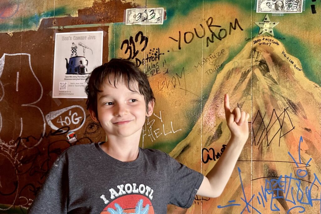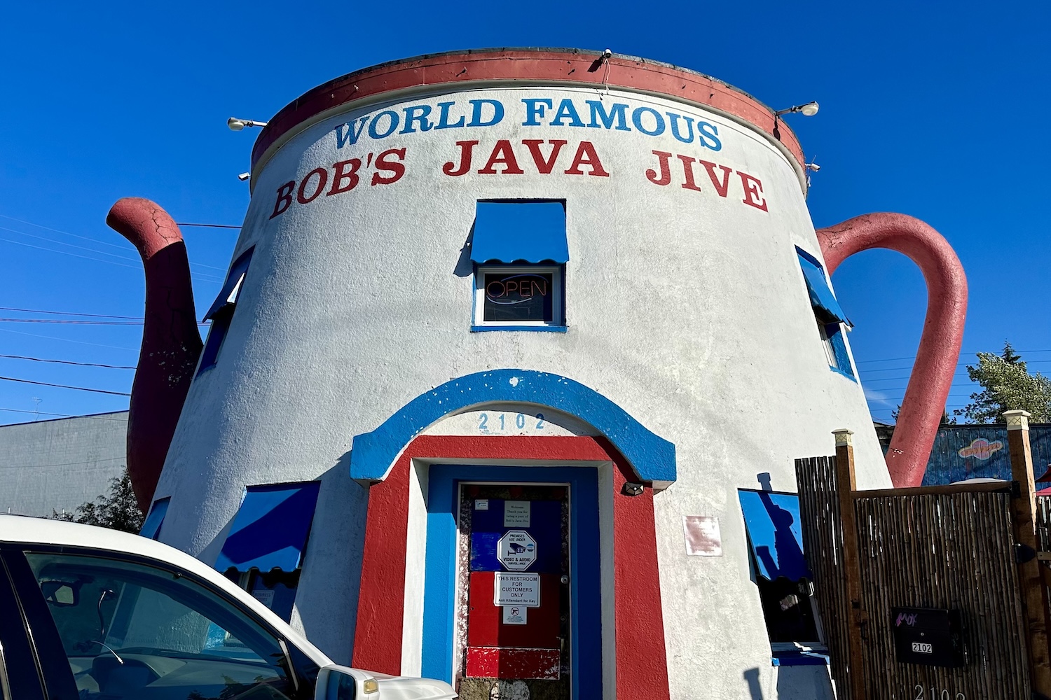 On our long drive from Vancouver BC to home, we continued our quest to stop at roadside attractions. This one was Bob’s Java Jive, which we thought was a coffee shop, but it looked more like a bar inside. But it was cool that we were inside a giant coffee pot!